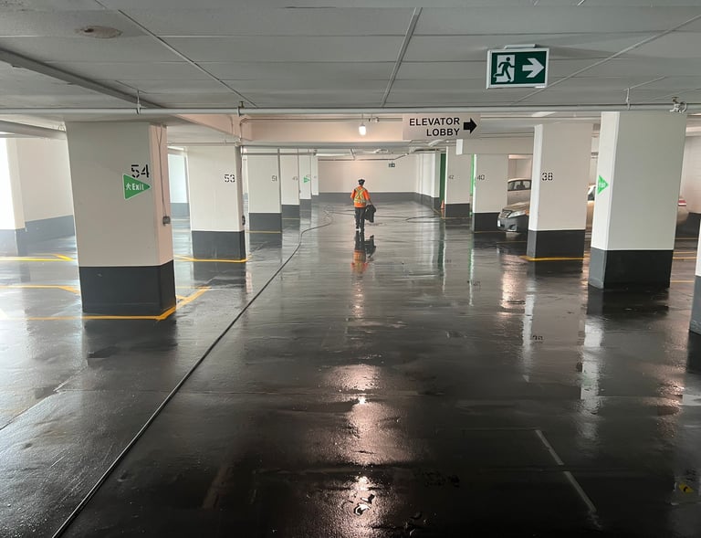 Heavy-duty cleaning for tough surfaces like driveways and parking lots using powerful equipment.